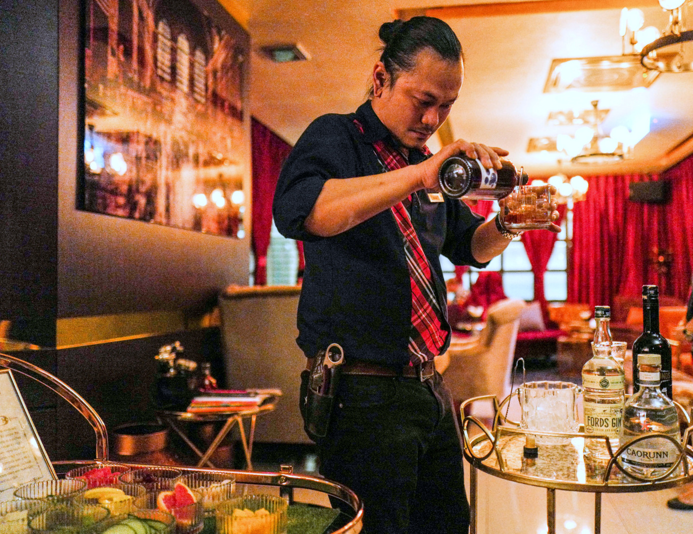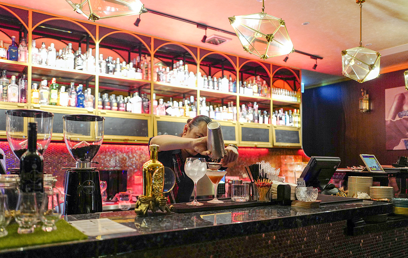 For an evening of drinks, Mazes unique gin-sum is a fun way to bring gin enjoyment to the next level. Order a glass or bottle of gin, & add RM38 for a pushcart comprising fresh fruits & herbs, which may include the likes of grapefruit, kiwi, cucumbers, raspberries & more. Mix & match these to experiment with & enliven your gin - Sloe Gin could be complemented with watermelon, lychee & lemons, Caorunn could go with red apples, The West Winds Cutlass with capsicum & lemons; its a memorable method for better appreciating the nuances of gin. To that end, Maze also offers a selection of complimentary gin samplings at the counter, including Fords this month. All in all, the bar boasts over 150 craft gins for a bounty of botanicals.
