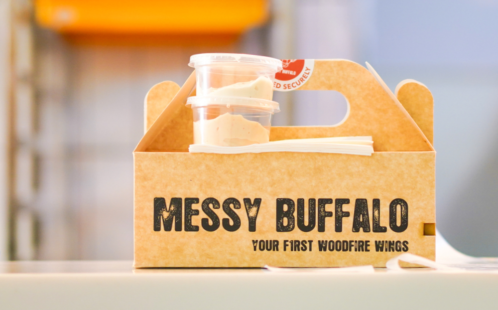 Messy Buffalo is a new restaurant that tackles not only noteworthy wood-fired pizzas but wood-fired chicken wings, its own slick, saucy and succulent take on buffalo wings, grilled on skewers over rubber tree firewood.