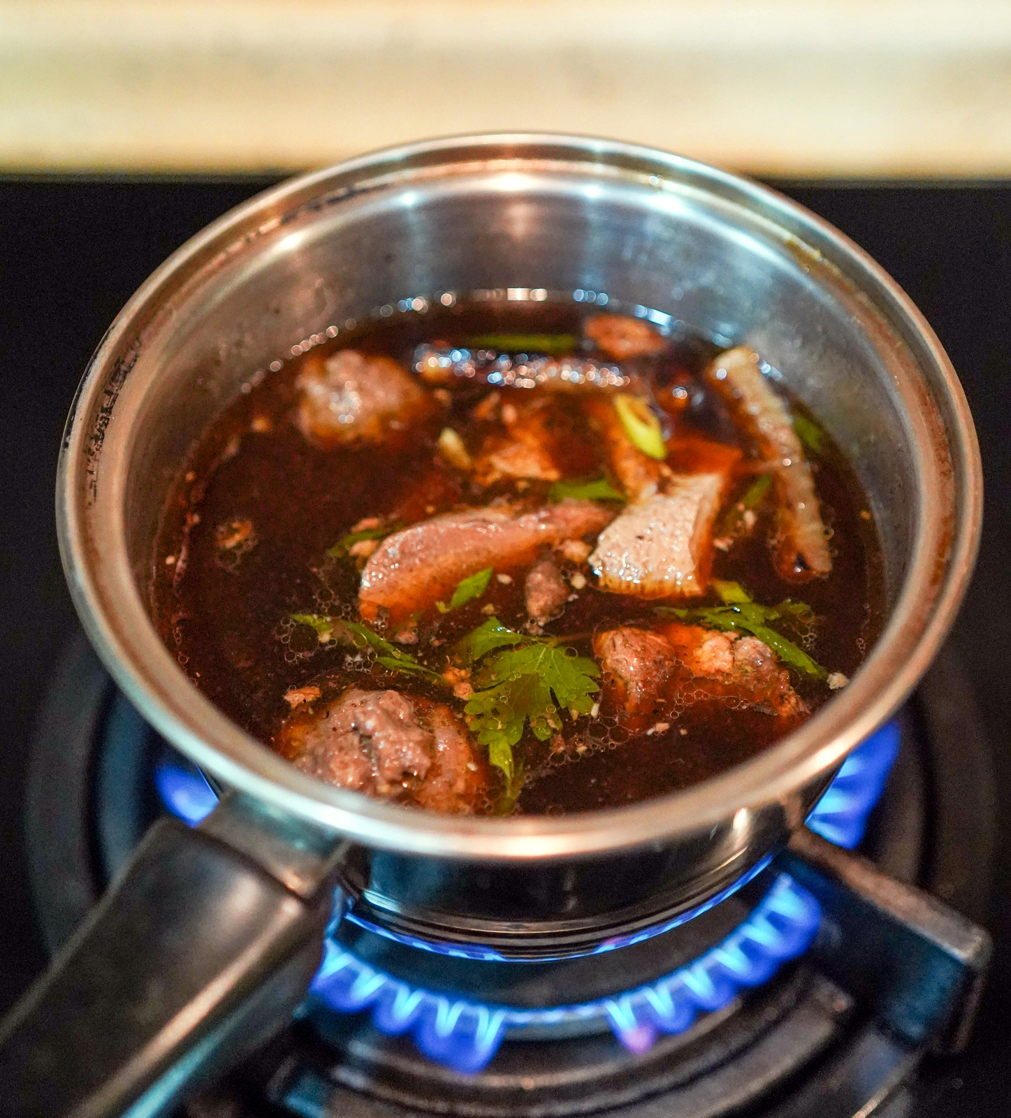 Powerfully, pungently aromatic, the stock for this broth is consistently replenished with beef trotters and knuckles to preserve its full-bodied, collagen-powered flavour. Its richness seems increasingly amplified as the months go by.