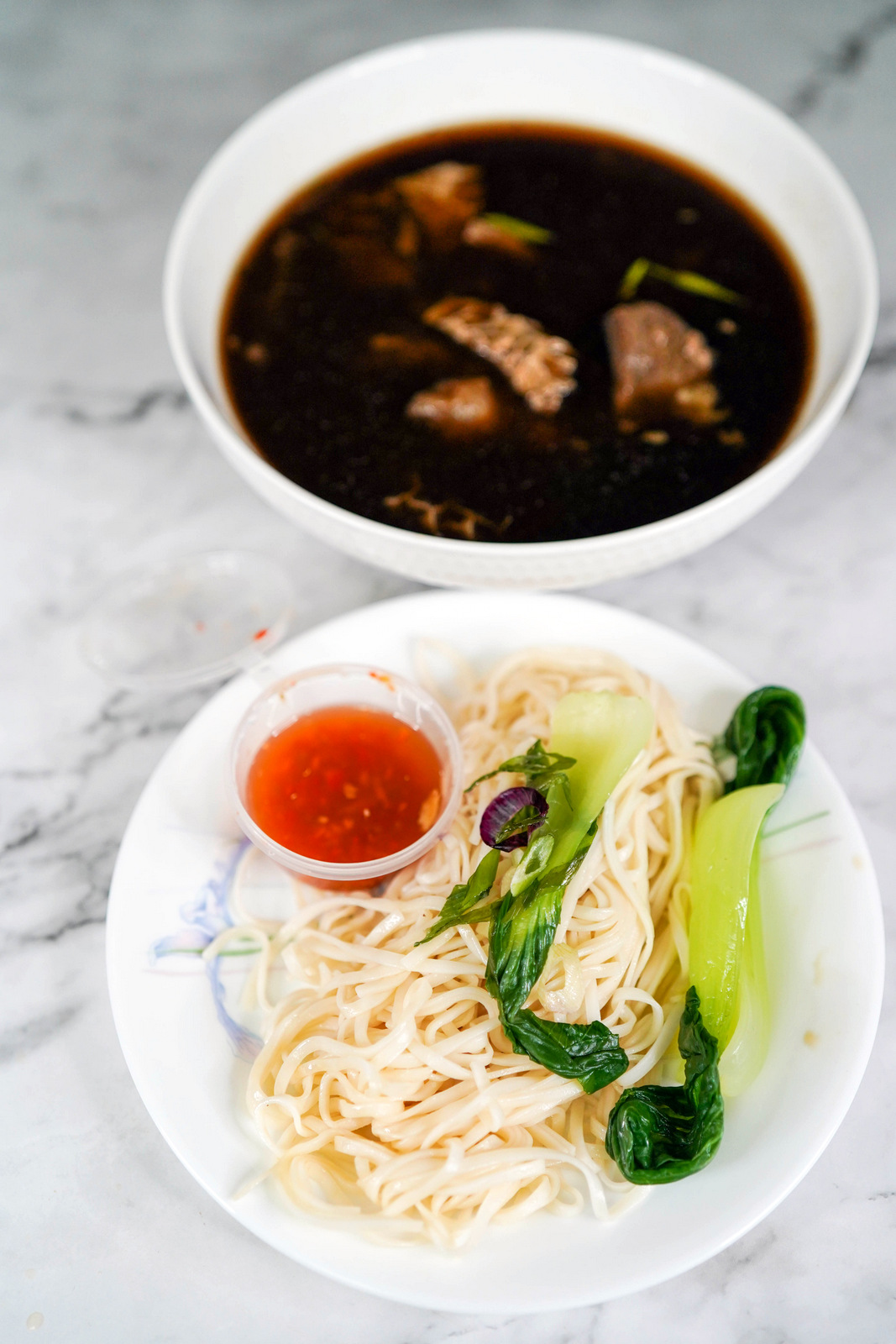 Nasi Air Pantai Timur Set (RM20) is a fuss-free ensemble of fluffy steamed white rice, veggies, fried shallots, shallot oil, garlic crumbs, spiced up with Thai vinegar chilli sauce that cuts right through the broth with beef balls and tendon and Thai finely grounded chilli 'gunpowder' that brings a fiery bang to the broth. Eat the rice and broth separately or sink everything into the broth, transforming it into true Nasi Air.