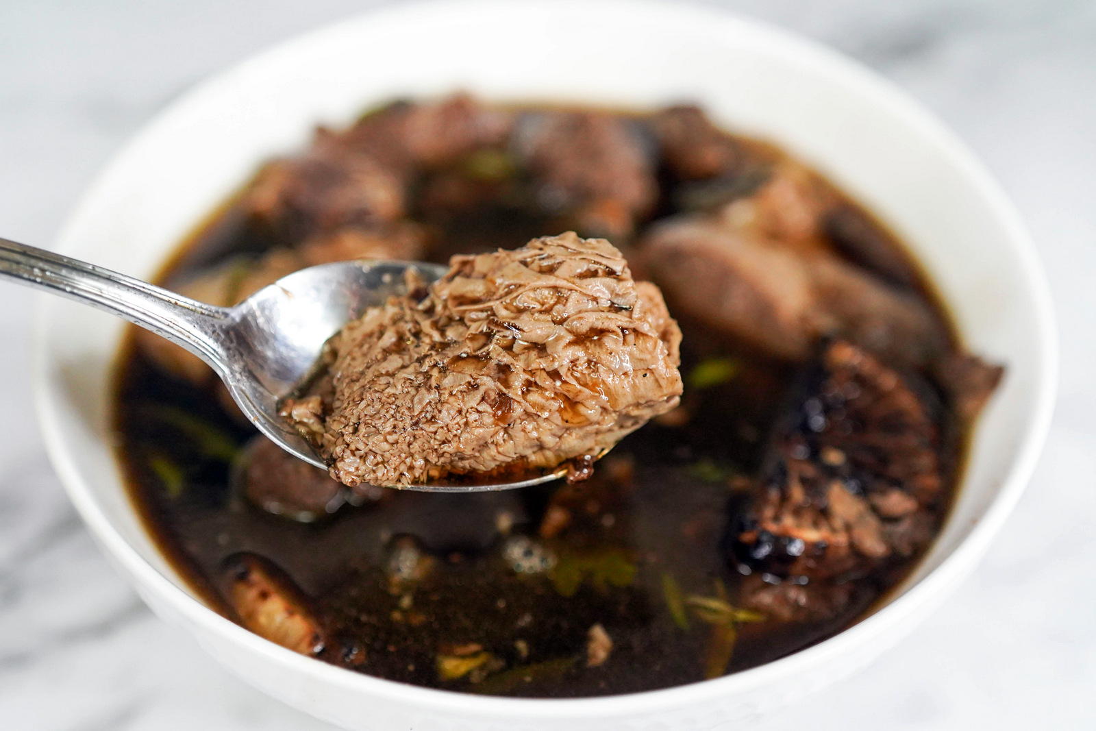 It's a beef bowl in the best sense, a top-notch exploration of tongue-to-tripe textures, from fragrantly fleshy to generously gelatinous, from tongue that slips and slides to tripe with a pleasurably chewy bite.