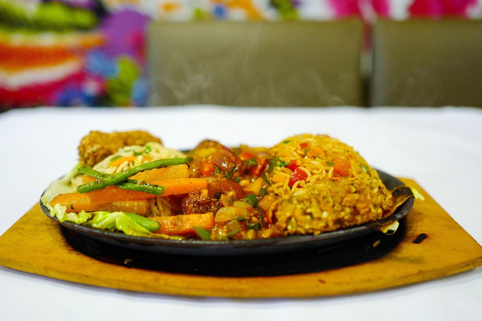 Our meal soared to sizzling heights with mounds of rice that surface steaming at the table - have these grains in all their glory, butter-cooked with vegetables in a sultry sauce that's simmering with fresh, juicy tomatoes, or fried with a side of noodles in an Indo-chinese serving, jazzed up with sweet-sour Manchurian vegetable balls.