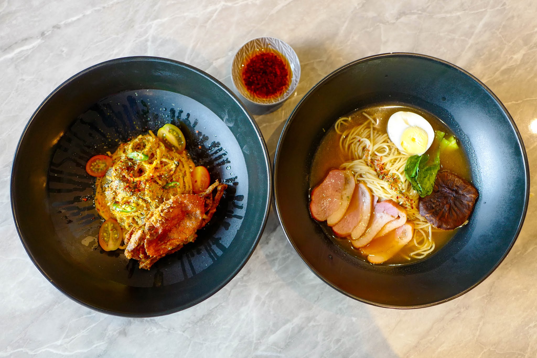 Noodle devotees can choose from East to West, from Fiery Soft Shell Crab Pasta that lives up to the 'fiery' in its name, courtesy of an authentic Malaccan-Portuguese debal curry sauce that does chilli-spiked justice to Kristang culinary traditions, complete with soft-shell crab for the flavour of the sea (RM24.50), to the more soothing Duck Broth Ramen, with slices of smoked duck, egg, vegetables and mushrooms (RM18.50). The ramen reflects the painstaking work and meticulous thoughtfulness of a kitchen that makes all its own sauces - both the mild broth and an accompanying chilli dip are prepared on-site, with a blend of duck stock, miso paste and soy sauce for the steaming-hot soup. The wheat noodles are dunked cold into it, so they retain their smooth firmness to the final strand.