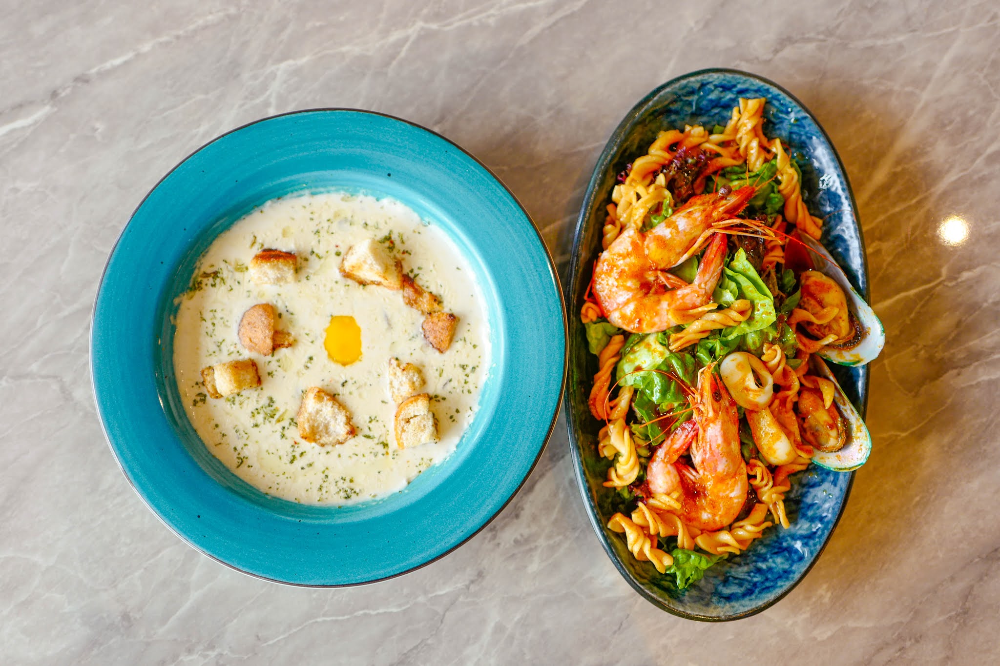 The Kerabu Ocean Spiral is savoury with umami-rich shrimp paste, zesty with lime and spicy with chilli, with a base of fusilli for pasta pleasure to bring together Italy with Southeast Asia, a hearty foundation for fresh, large prawns, mussels and calamari. This could easily be a main meal on its own, but it works well for whetting the appetite too (RM15.50, a seafood fan's genuine bargain).
