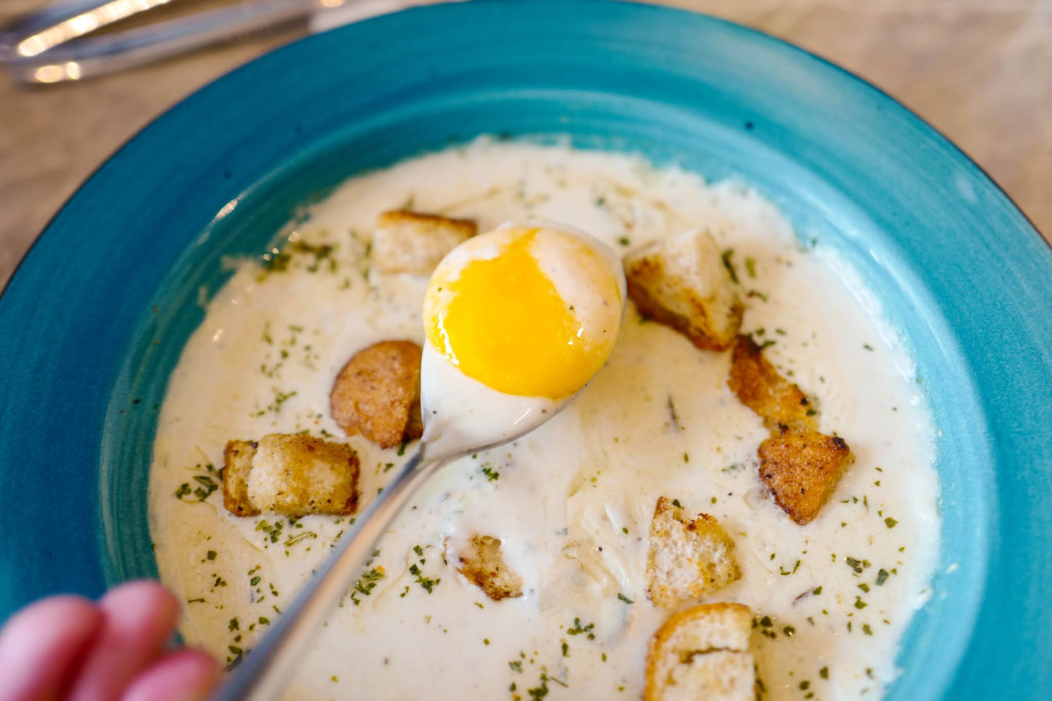 While Wild Mushroom Soup might sound conventional, Mun's bowl offers moonlight magic with an egg yolk in the middle of the soup, made in Mun's own kitchen with a trio of different mushrooms, sprinkled with croutons for crunch. The yolk isn't merely a novelty - it serves a functional purpose to thicken the soup, relying on less cream for a less artificial-textured soup (RM13.50).