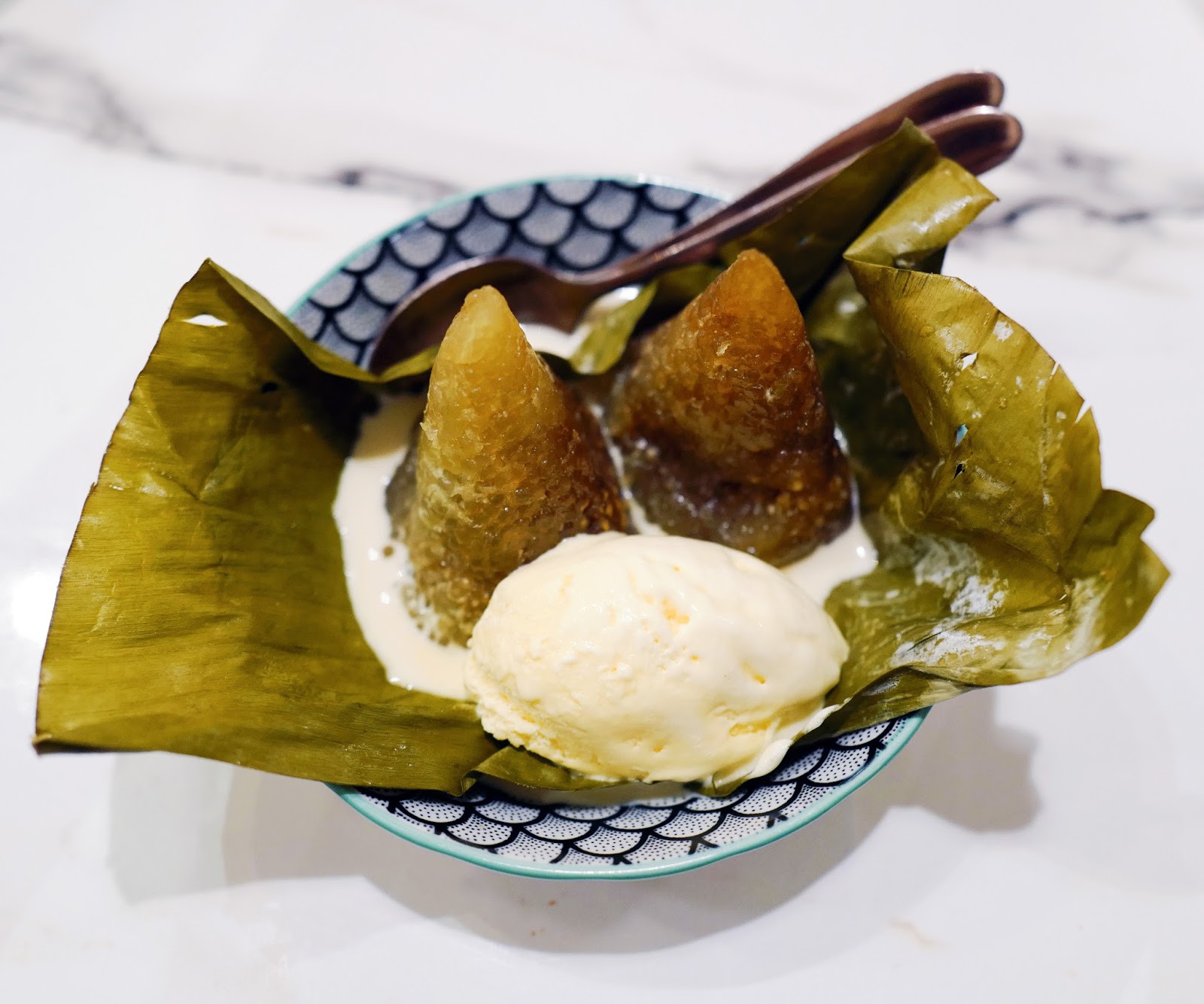 Don't dare skip dessert: The Kuih Abuk Abuk is a modern interpretation of a Johorean dessert, glutinous goodness that's enriched with the flavours and fragrance of gula Melaka and banana leaves, a rewarding warm-and-cold medley with vanilla ice cream (RM 8). The Biskut Milo is also a triumph, layering cookies made of Malaysia's favourite chocolate malt beverage with luscious coconut ice cream (RM 5.80).