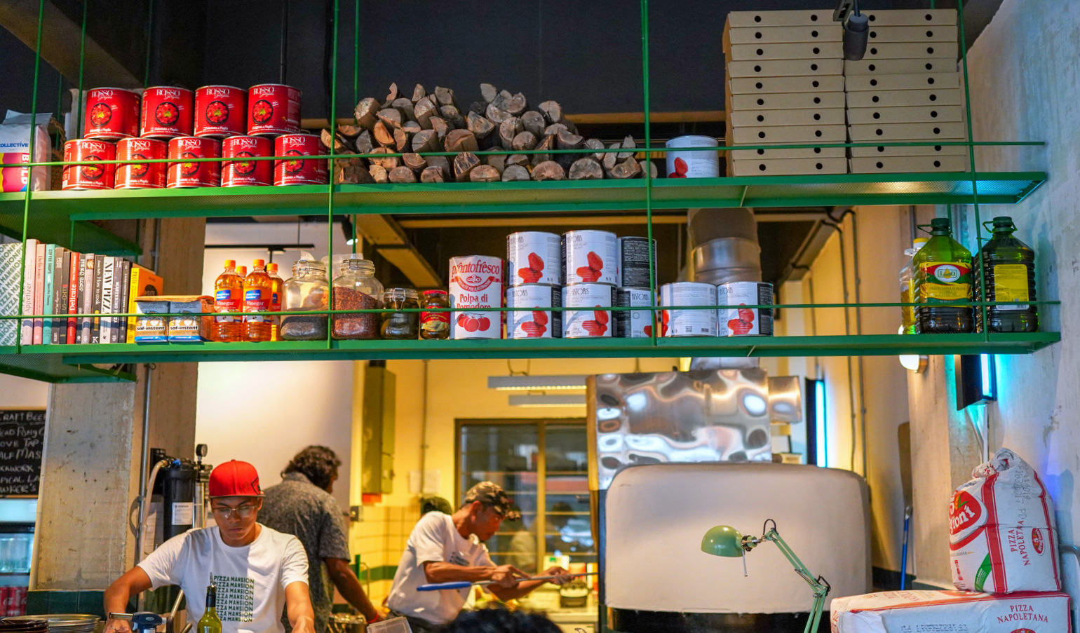 This is wood-fired pizza that's terrific from the first bite to the final chew - every topping comes together, making each slice even more gratifying than the sum of its parts. Packs of custom-milled, soft wheat flour and hulking cans of preserved whole tomatoes from Lombardy and Puglia testify to the pizza parlour's committed passion.
