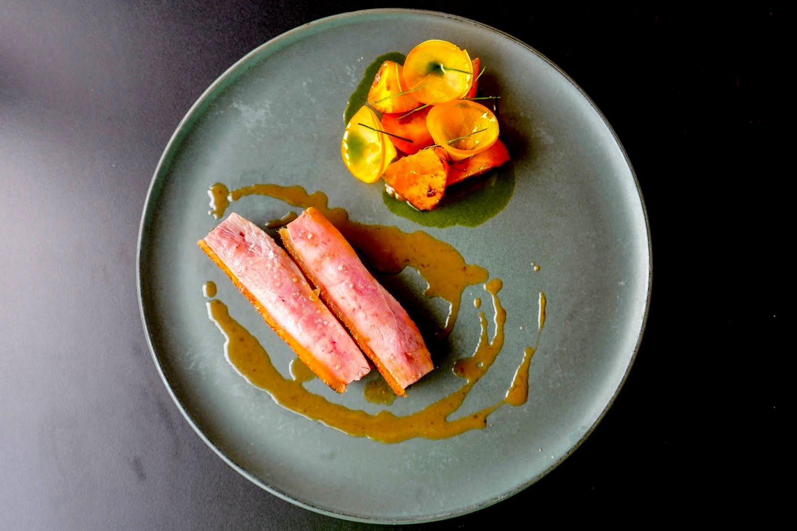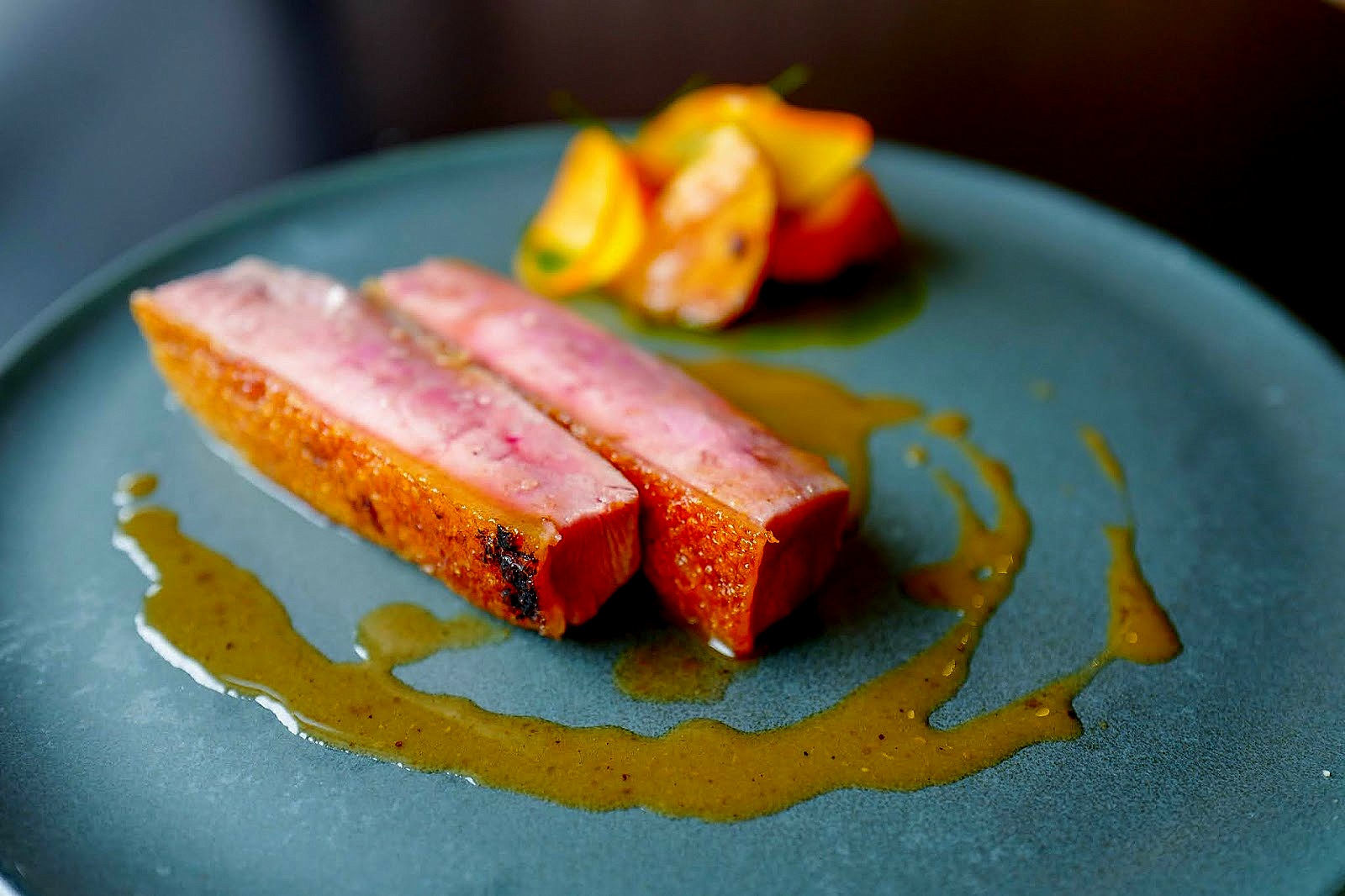 Playte works wonderfully with produce from both land and sea, harnessing ingredients to their full potential. Quail absorbs the marinade of a Chinese-style master stock for an hour before being grilled and glazed, with nuanced notes of tamarind to balance out the inherent gaminess of the meat. The quail legs are fleshy and succulent, heaped with a flourish of French and Southeast Asian herbs, from chervil for fines herbes fragrance to daun kesum for laksa-leaf pepperiness, encircled with a red tea-poached fig puree for a nectarous, luscious final touch.