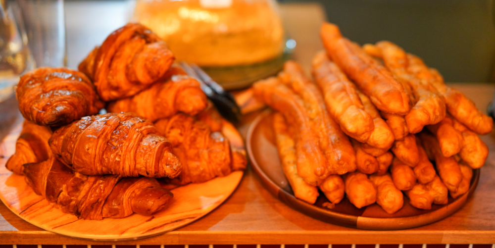 Porridge also comes in Chinese and Scottish counterparts: The former is the familiar congee that's rich and creamy with minced pork and century eggs (RM14.50), while the latter is an ultra-thick and rustically textured oat porridge with a flavour boost from salt and butter, served with black coffee on the side (RM13). Complete the porridge with an order of youtiao (RM7.50 for two), which shares a counter with fresh, flaky croissants.