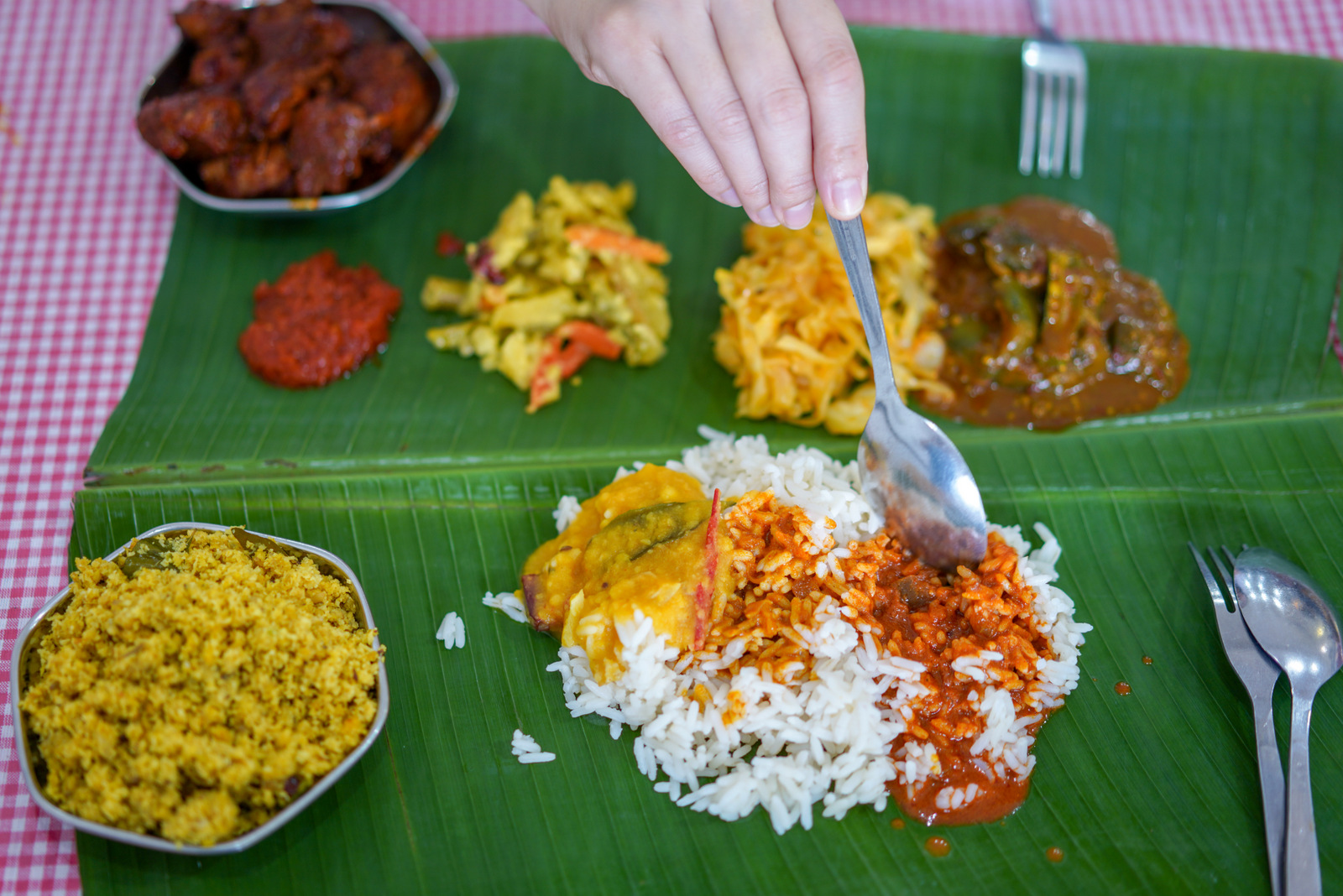 Lunchtime at Shobana's Kerala Kitchen (reputedly named for the restaurant founder's late mother) revolves around soulful, fuss-free banana leaf meals that recall home cooking, with flaky, fluffy shark fish puttu as one potential highlight among the soothingly spiced accompaniments for your authentic parboiled rice.