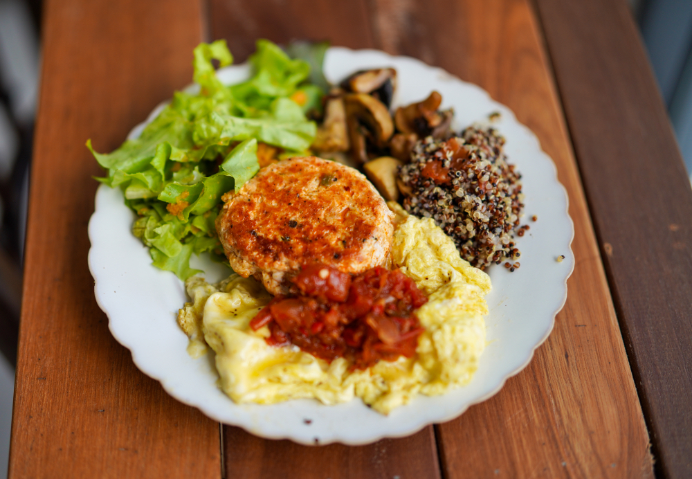 Even a Big Breakfast takes on new dimensions, centred by Sisu's own chicken patty, a natural, full-fleshed alternative to supermarket sausages, encircled by soft scrambled eggs spiced up with a surprisingly fiery tomato chilli jam that's laced with organic apple cider, sautéed garlic butter mushrooms, quinoa and leaves dressed in carrot vinaigrette (RM18).