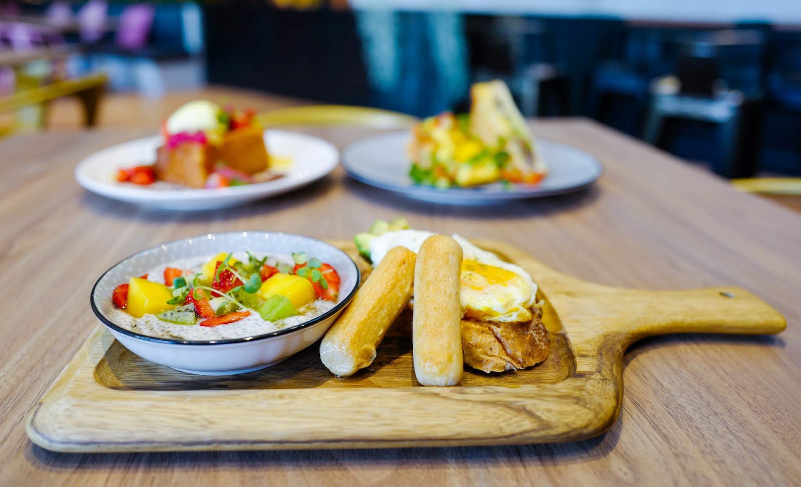 But it also seeks to capture customers who want to keep things simpler and more straightforward, with the benefit of a relatively lower price tag, illustrated by a back-to-basics Brekkie Board (RM23; fried eggs with chipolata sausages, avocado and cheese herbed toast, balanced out with an uplifting coconut chia pudding laced with mangoes, strawberries and kiwi fruit), meat-free enthusiast's Vego Croque (RM20; a baked sandwich layered with mushrooms and asparagus, completed by a soft omelette, creme dijon cheddar and cherry tomato salsa) and the perennially popular French Toast with a seductive sophistication (RM19; with lemon curd, honey mascarpone, chocolate soil, and rose apples with cinnamon).