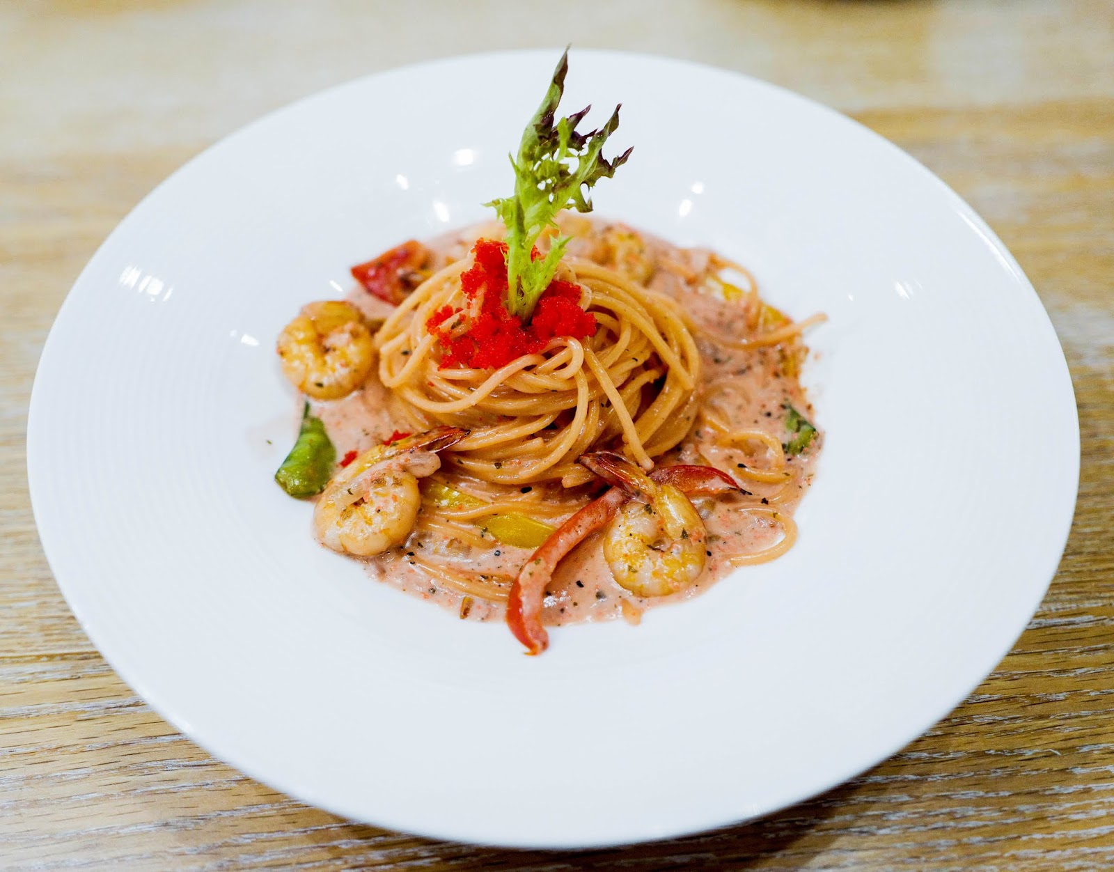 For seafood satisfaction, sample the Squid Ink and Seafood Pasta, a familiar crowd-pleaser of midnight-hued magnificence, drawing out the ocean's fresh, unmistakable flavours with prawns, clam, calamari, sole, scallops, mussels and oysters (RM 34.80), or the more luxurious-textured Creamy Shrimp and Roe Pasta, combining crustacean with ebiko on one plate, balanced out with capsicum and snow peas for crunch (RM 31.80).