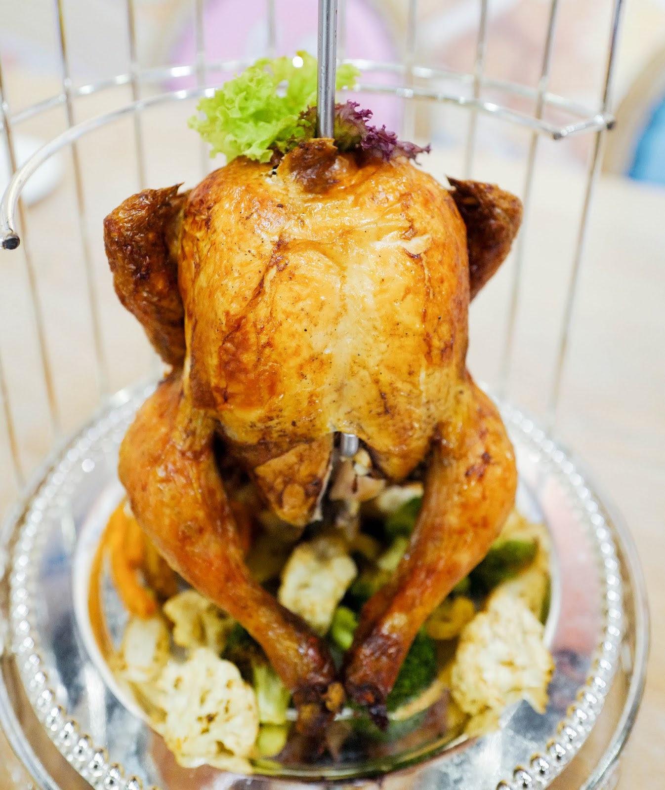 The whole chicken, fleshy and flavoursome, is served strikingly in a bird cage that'll have everyone snapping photos instantly; thankfully, it tastes as appealing as it looks, completed with roasted seasonal vegetables and a spicy chilli sauce and sweet lemon sauce, for a full meal that two or three customers can share.
