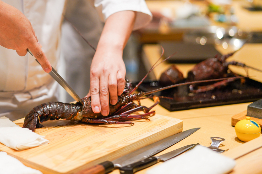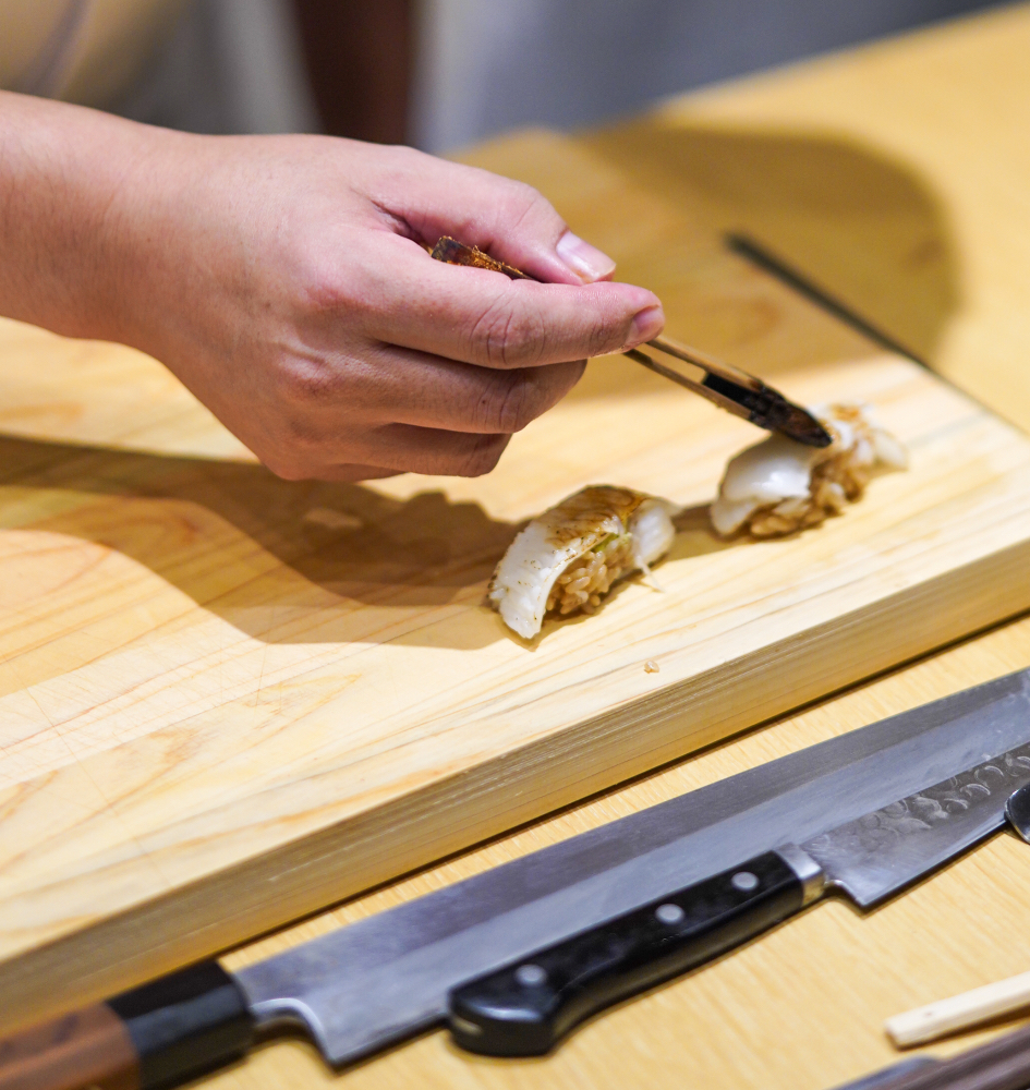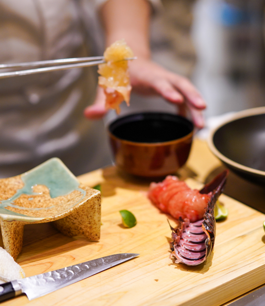 Kyoto-born chef Tanaka, a partnering chef at Sushi Daiku, readied his sharp, sleek blades, relying on them to slice exquisite raw fish and pierce through live crustaceans.