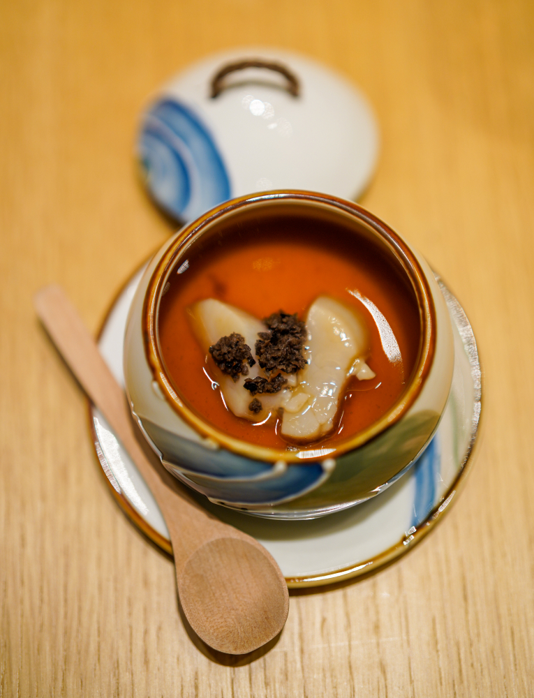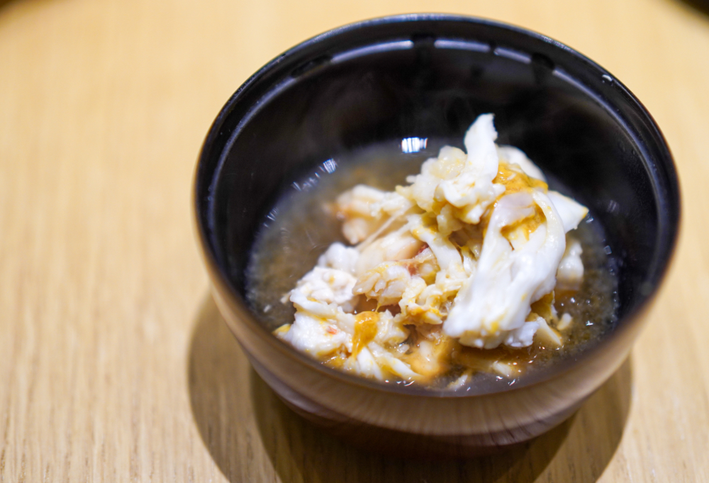 The lobster is as luxurious as it gets - meaty and fleshy, full-bodied in its flavour, clawsome and awesome. The chefs prepare it in two styles, first the body and tail, then the head, to distinguish between the characteristics contained within an entire lobster. If you can't resist lobsters, bookmark this omakase.