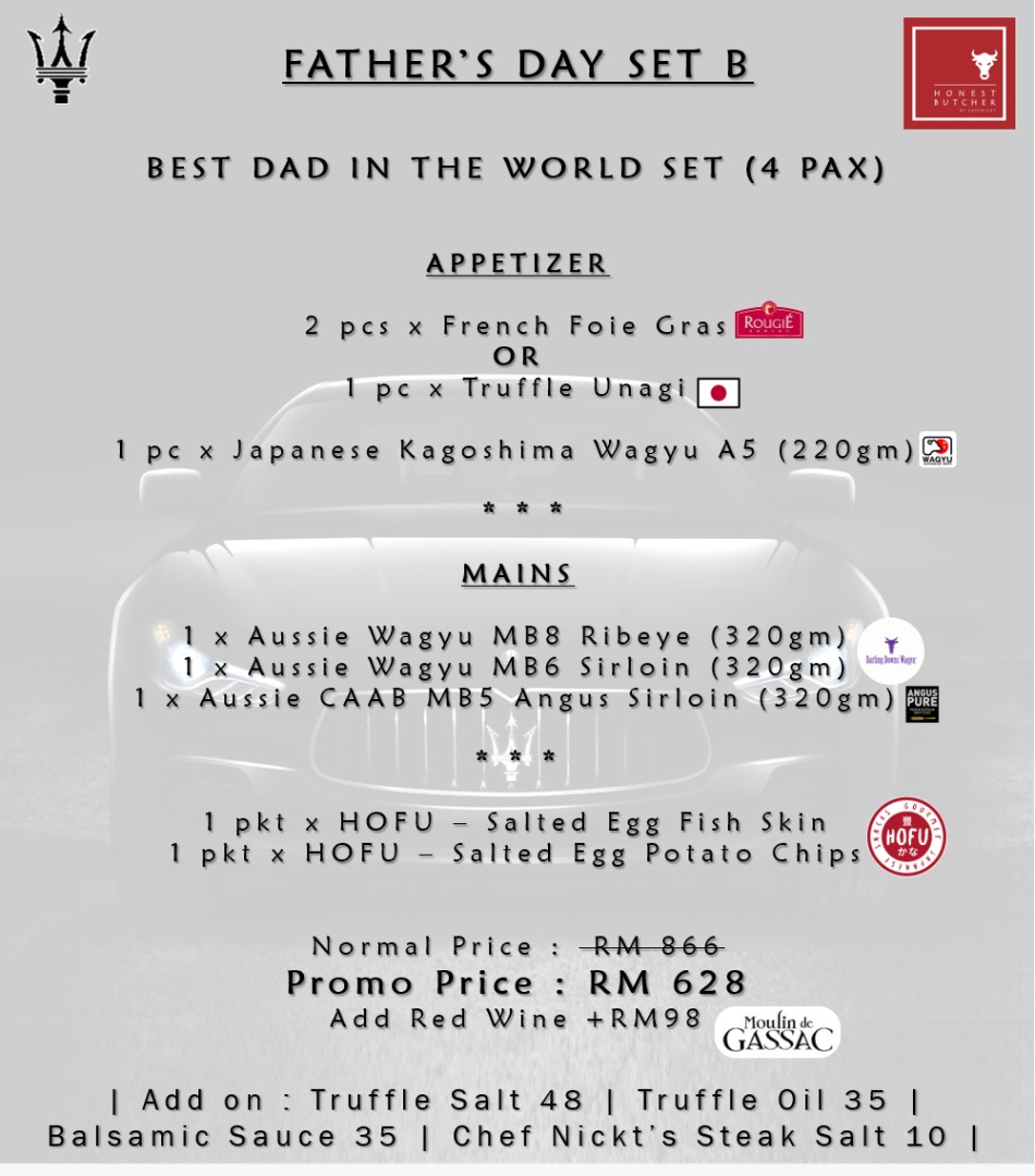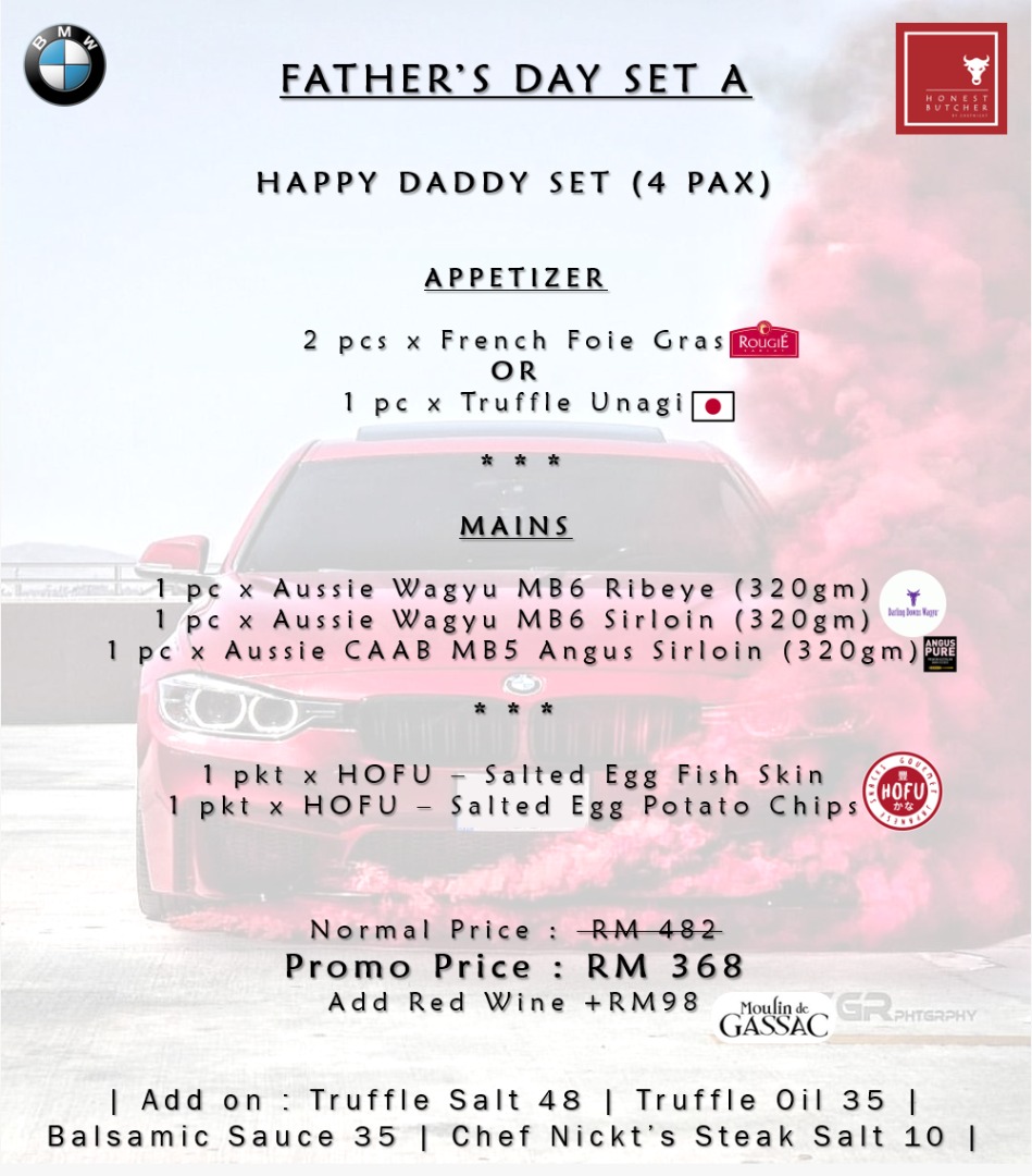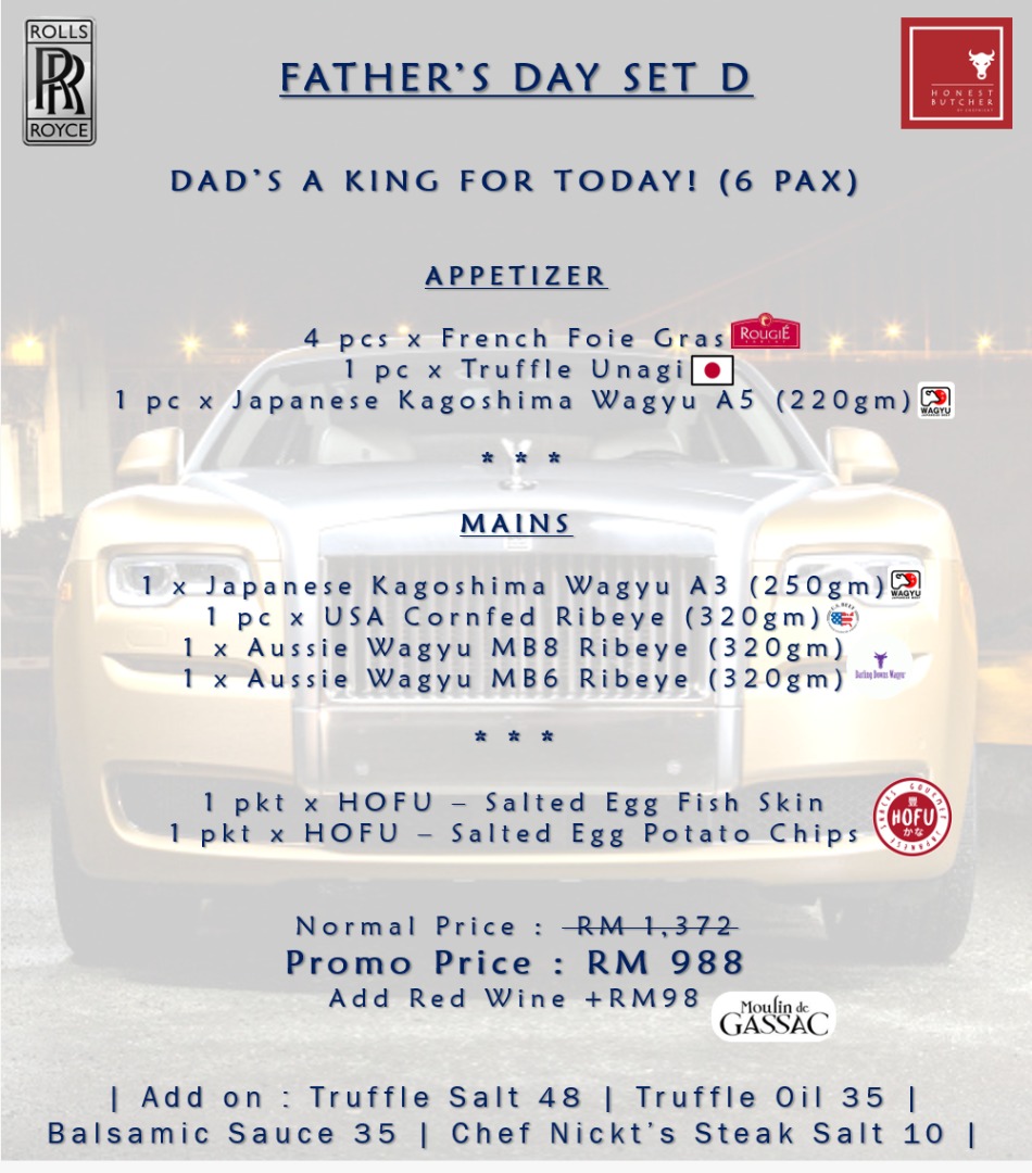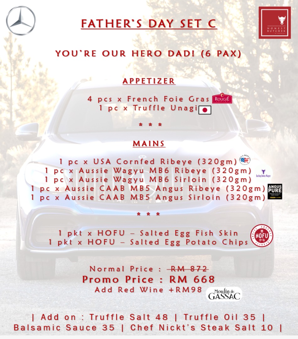 From now until 21 June 2020, The Honest Butcher is offering family sets filled with premium protein, starting at RM368 for four persons, with discounts of more than 20% off the price of the combined individual items. If Dad is a hot-blooded beef lover, this will be the perfect Father's Day meal at home!
