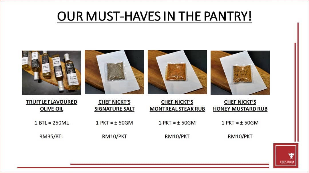 You can communicate directly with Chef Nickt to order and enquire at www.wasap.my/60126286804 - you can also get his full catalogue, which includes lamb, foie gras, steak rubs, salt and olive oil.