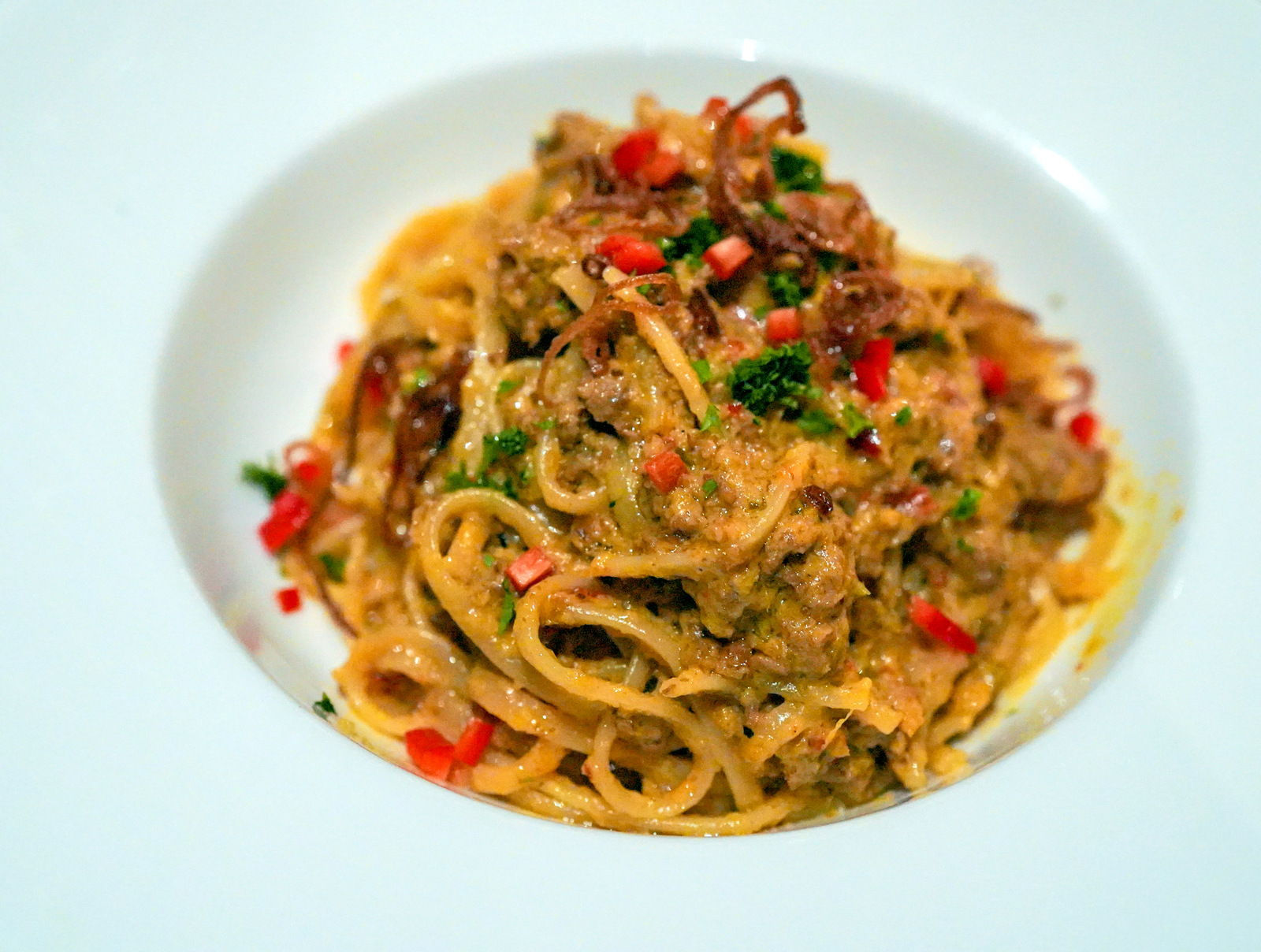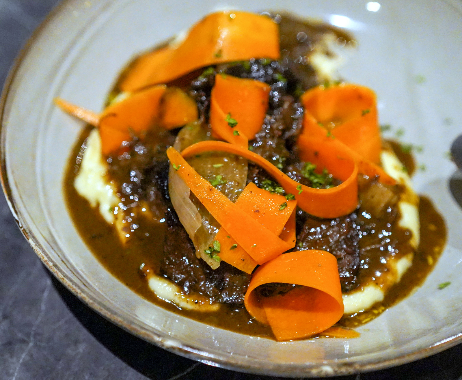 Though the recipe for beef bourguignon was first published in the early 1900s, its origins can be traced back centuries earlier, as a countryside preparation to soften less-coveted cuts of meat through lengthy cooking. The Public House's rendition preserves that tradition, ensuring each chunk of the beef cheeks bears the fork-tender results of a red-wine slow-braise, cushioned with a soothing potato mash, brightened with wide ribbons of carrot (RM36).