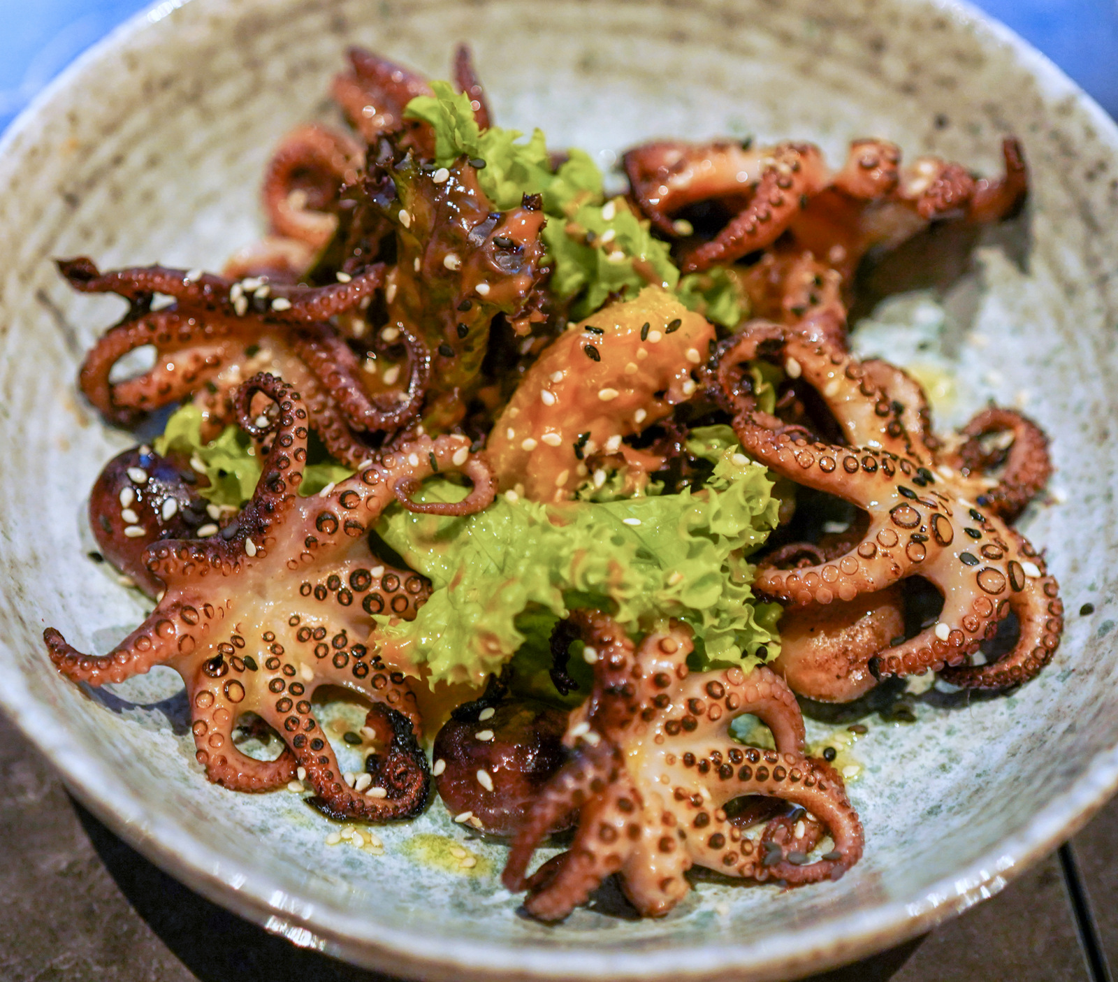 The starters shine, perfectly constructed for sharing - soft-shell crabs come beautifully battered, balanced with basil, cauliflower puree and a house-made hot sauce that each play a role to ramp up this recipe (RM26); baby octopus are gently grilled with Shaoxing wine and sesame seeds, their bouncy chew remaining intact, jazzed up with juicy orange segments (RM18); sliced cecina with shaved manchego form a lusty, full-bodied marriage of Spanish air-dried beef and cheese (RM33); daikon is lightly pickled in a lovely salad that accentuates the winter radish's invigorating crunch without a too-pronounced piquancy (RM22).