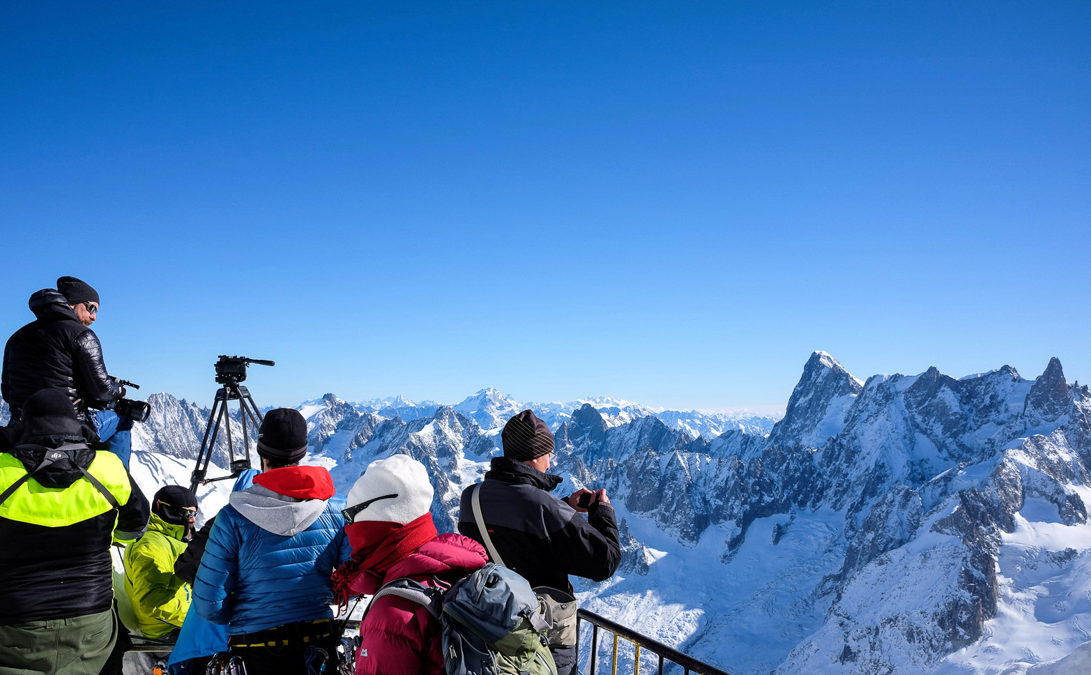 At an elevation of 3,842 metres, the summit of Mont Blanc's Aiguille du Midi is most often freezing - a cup of hot chocolate spiked with rum is the prescribed antidote to counter the cold before taking in the high-altitude panorama of glacier routes.