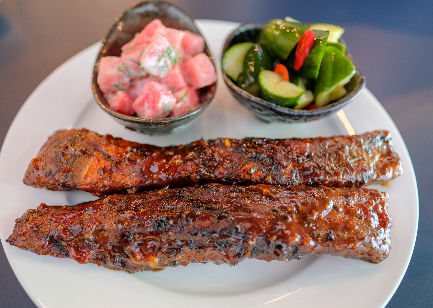 If you adore pork ribs, bookmark Tipsy Boar - the char-grilled U.S. ribs are a standout, evolving from an original Kansas-barbecue-inspired preparation, perfected to a lip-smacking, finger-licking quality, with a lovely, lively flavour that penetrates every tear-off-the-bone bit of the flesh. The portion of ribs pictured here clocks in at RM26 for 400 grams; customers can add a RM10 surplus for two refreshing sides, such as a watermelon mint salad and Japanese pickled cucumbers - alternatively, larger servings of the ribs are also available.