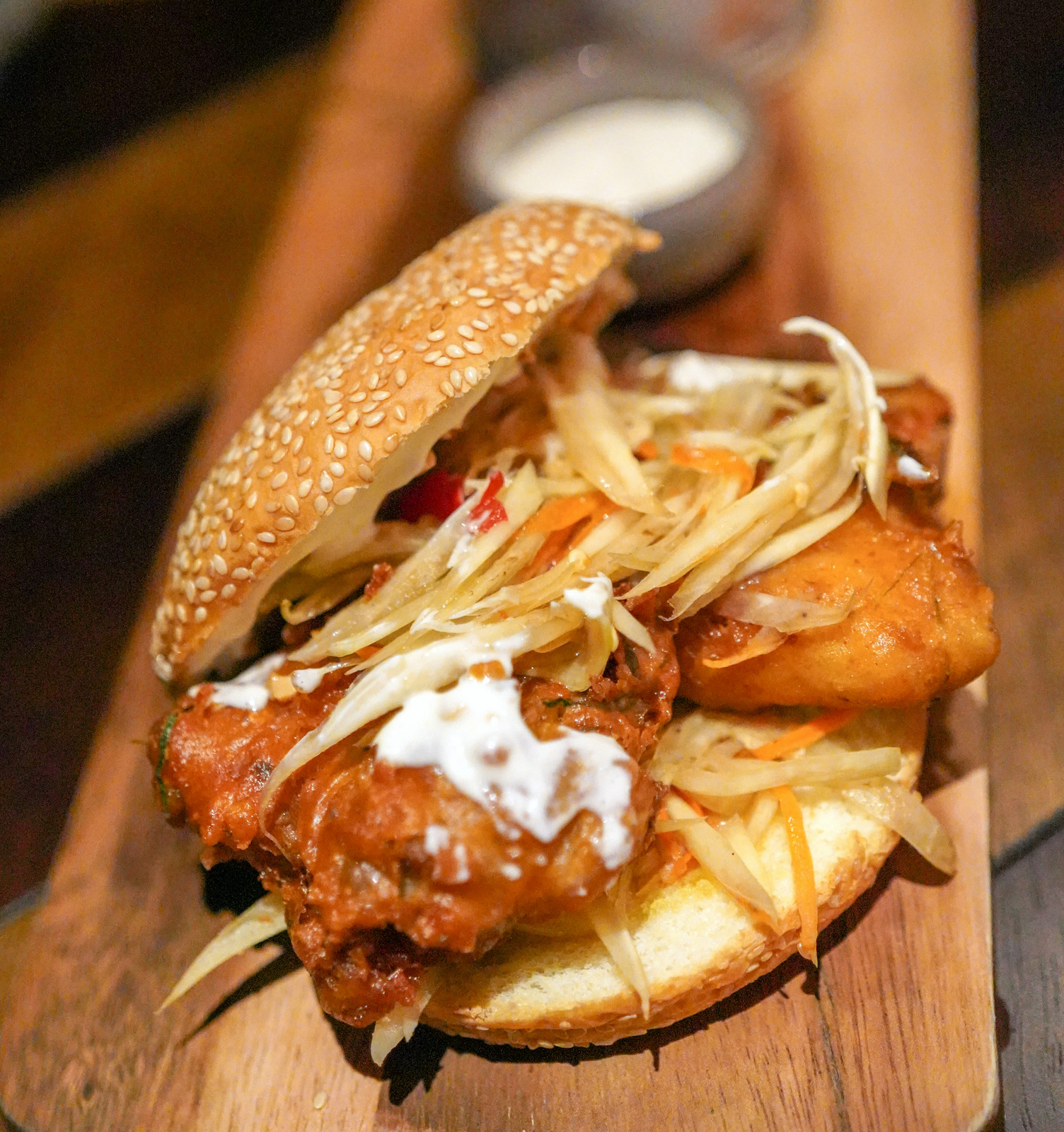 For burger enthusiasts, Tommy Thongchai could merit a visit for the Thai-informed burgers alone, stuffed with everything from deep-fried battered chicken topped with an uplifting som tam slaw (RM28) to a larb moo tod herbed pork patty with laarb slaw, krapao pork patty with fried egg, and deep-fried sea bass with tom yum aioli. The chicken burger is a terrific ambassador for the art of infusing the classic dynamics of Asian flavours into contemporary burgers.
