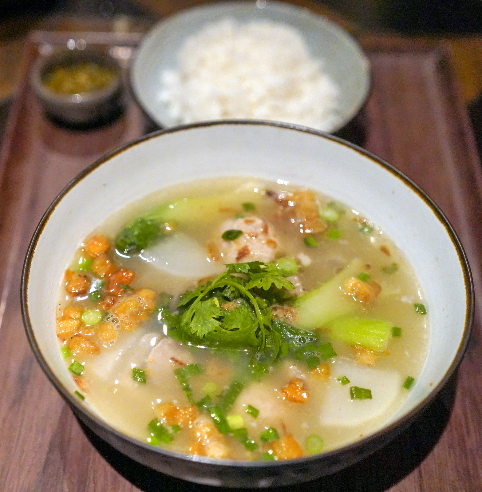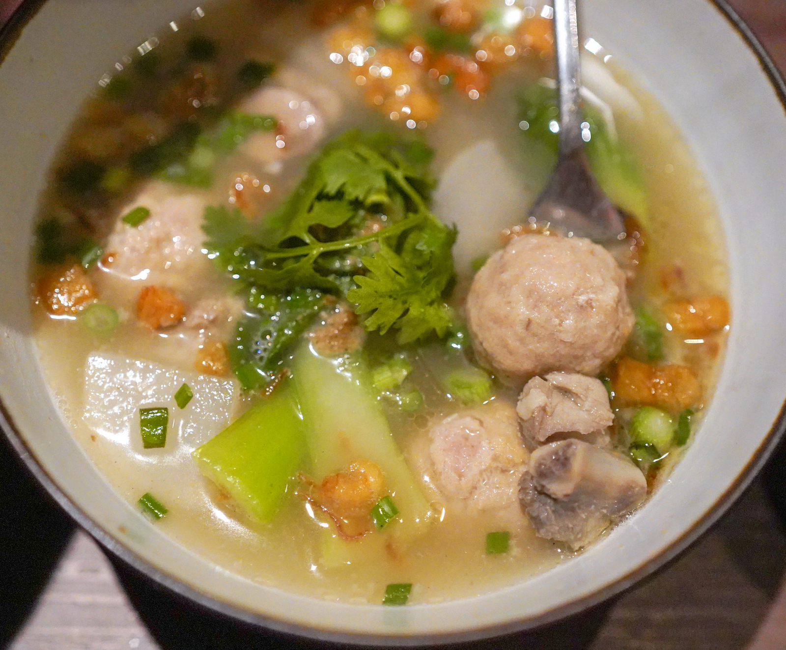 ... to rice platters and soup bowls - the Chiang Mai sausage fried rice brings back the herbed pork sausage that we can't get enough of, a moreish match with aromatic Thai jasmine rice and prawn crackers (RM19), while The Staff's Meal started out as something for the kitchen crew, but it turned out so triumphantly, it has earned a permanent spot on the menu, thanks to the substantial bowl of fall-off-the-bone pork ribs, meatballs and crunchy lard in a soulful broth that a Thai matriarch would approve of, completed with steamed rice for a meal that'll instantly restore your spirits (RM21).