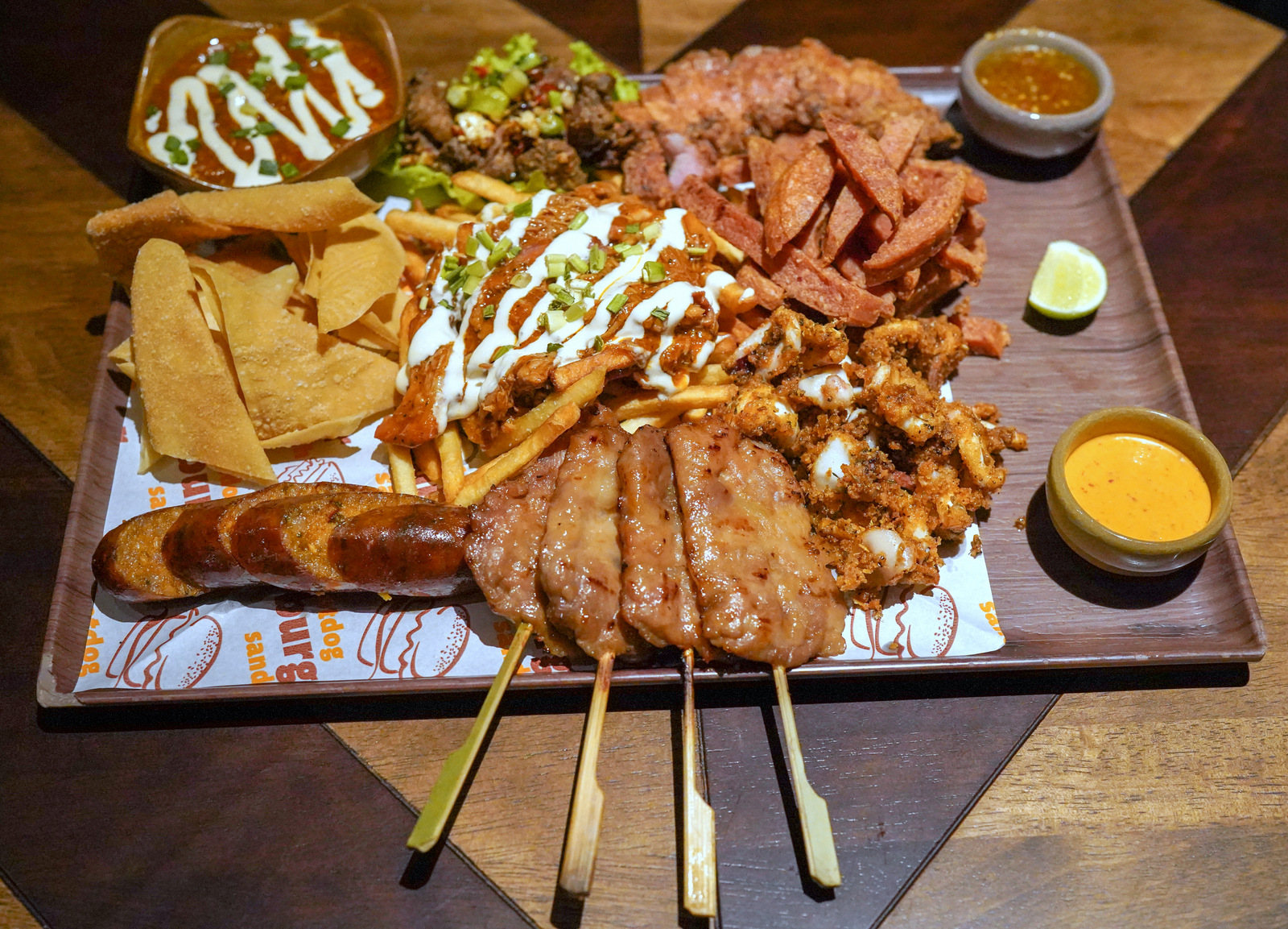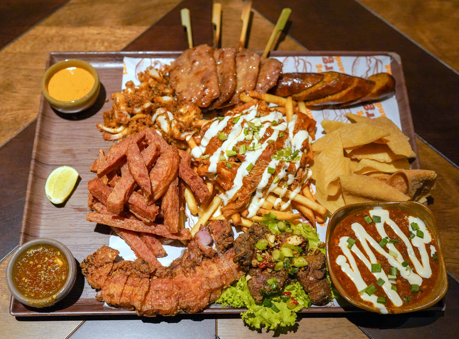 There's plenty more for merry munching: succulent Chiang Mai herbed pork sausage with a tamarind chilli dip; fried marinated pork belly that's crisp to the bite and juicy to the chew with a fresh chilli dip; fries heaped with robustly tender pulled pork garlanded with garlic aioli; wonton skin nachos with pork ragout; battered spiced calamari; luncheon meat fries; and pork riblets with fried garlic - an indulgence to devour on those calories-shouldn't-count evenings after a long day or week at work.