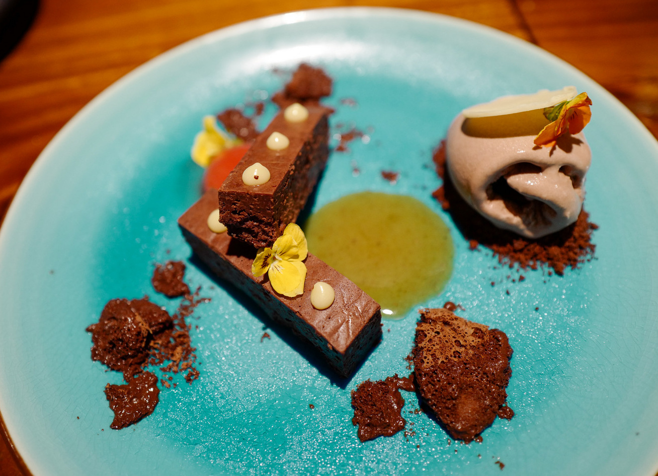 Desserts prove to be touchstones for playful inventiveness: The certain crowd-pleaser is the Chocolate Nemesis Texturas, a bravura ensemble of cacao-founded fantasies in varying shapes and forms, including fermented 72 percent dark chocolate, as well as milk chocolate ganache, rounded out with raspberry ravioli and nut puree (RM25), but patrons will also want to save space for fruity concoctions like the sous vide Granny Smith apples with olive oil sponge and ginger custard (RM22) and crema catalana with mandarin tips, rind and liqueur, completed with langues de chat cat tongue cookies (RM20). If you enjoy surprises, you can also try asking if the chef has off-menu desserts at hand.