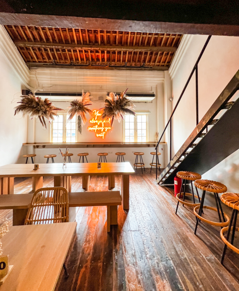 Explore multiple floors of intriguing corners, furnished with custom-made rattan flourishes, rounded out with ceramic basins and creaky wooden staircases in a photogenic setting filled with bare beams and brick walls. The expedition takes us to the top, finishing with a rewarding, wide-open view of the city's skyline.