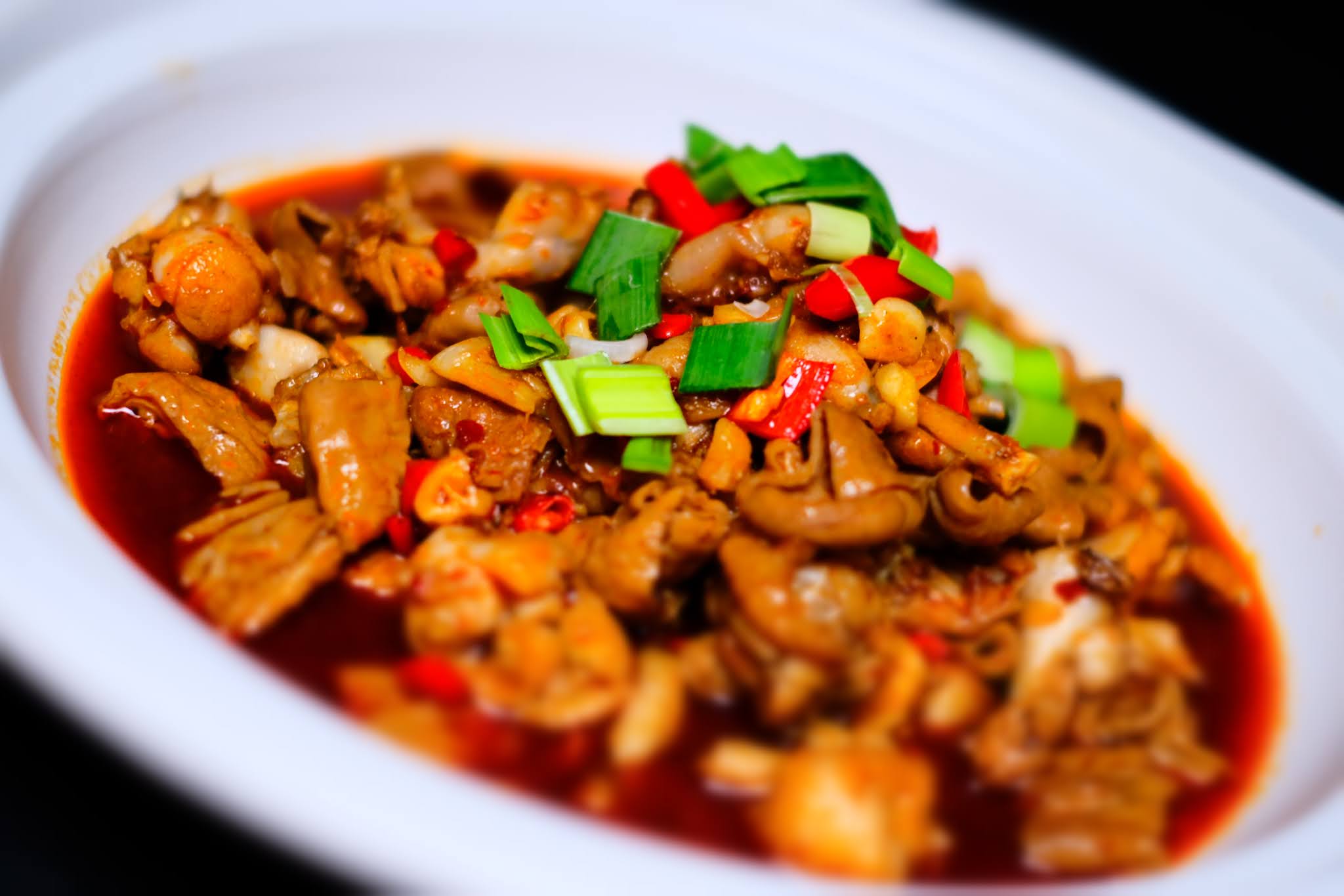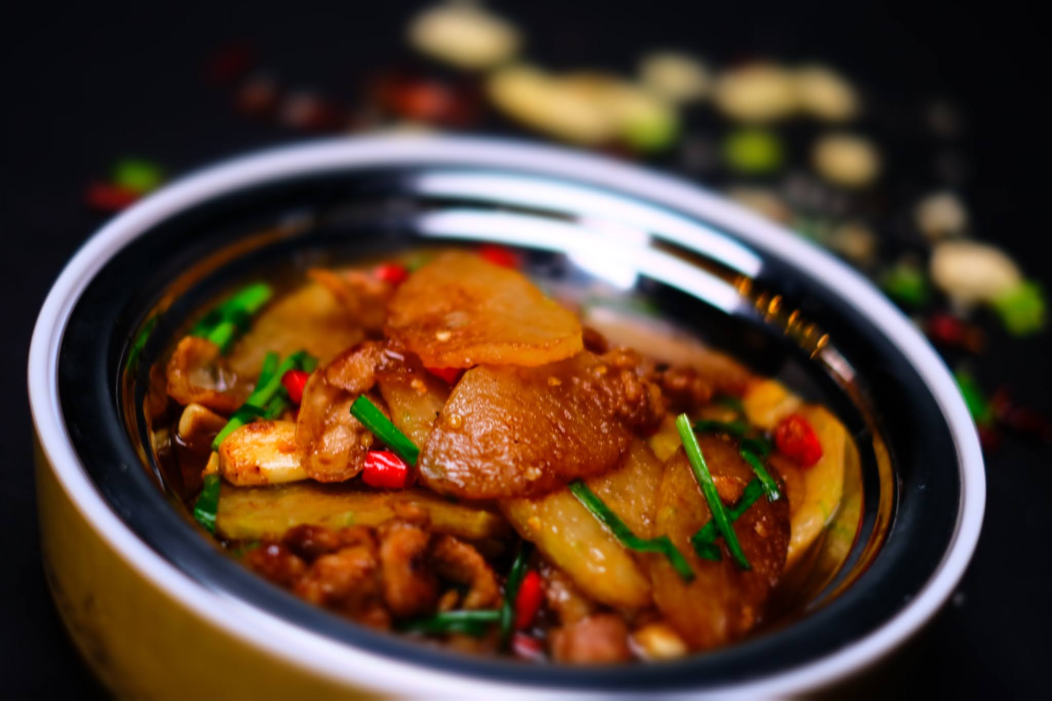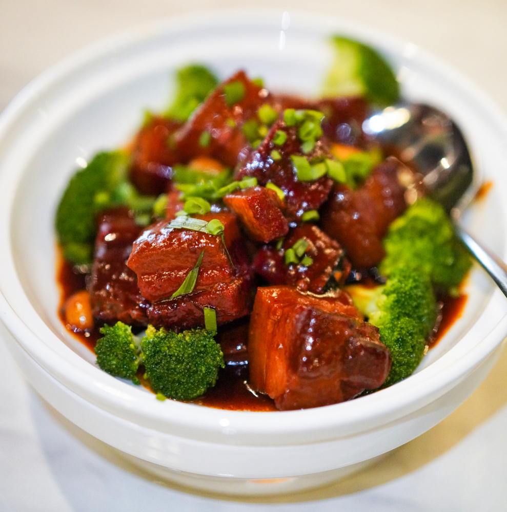 One of the most renowned Hunan recipes is Mao's Braised Pork, believed to be Chairman Mao's favourite fare. True to tradition, this is red-cooked pork belly, chunky and full-bodied, with generous portions of ginger, garlic, aromatic spices, chillies, sugar, star anise, light and dark soy sauce, and rice wine.