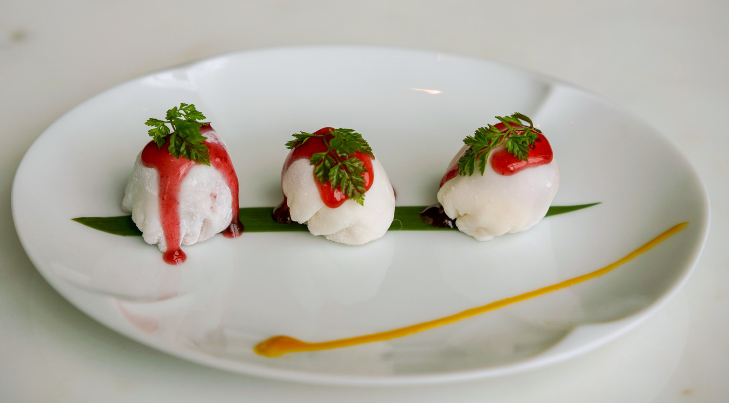 For dessert, the raspberry snow skin dumpling is notable for its luscious stuffing, a satisfying medley of fruit and cream (RM28); the house-made almond cream is a tad too mild and one-dimensional, though it's effectively complemented by the black sesame glutinous rice dumplings (RM28).