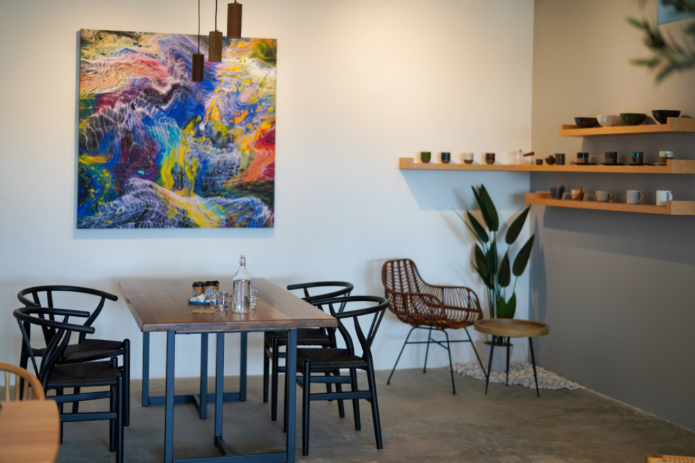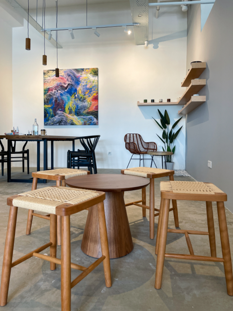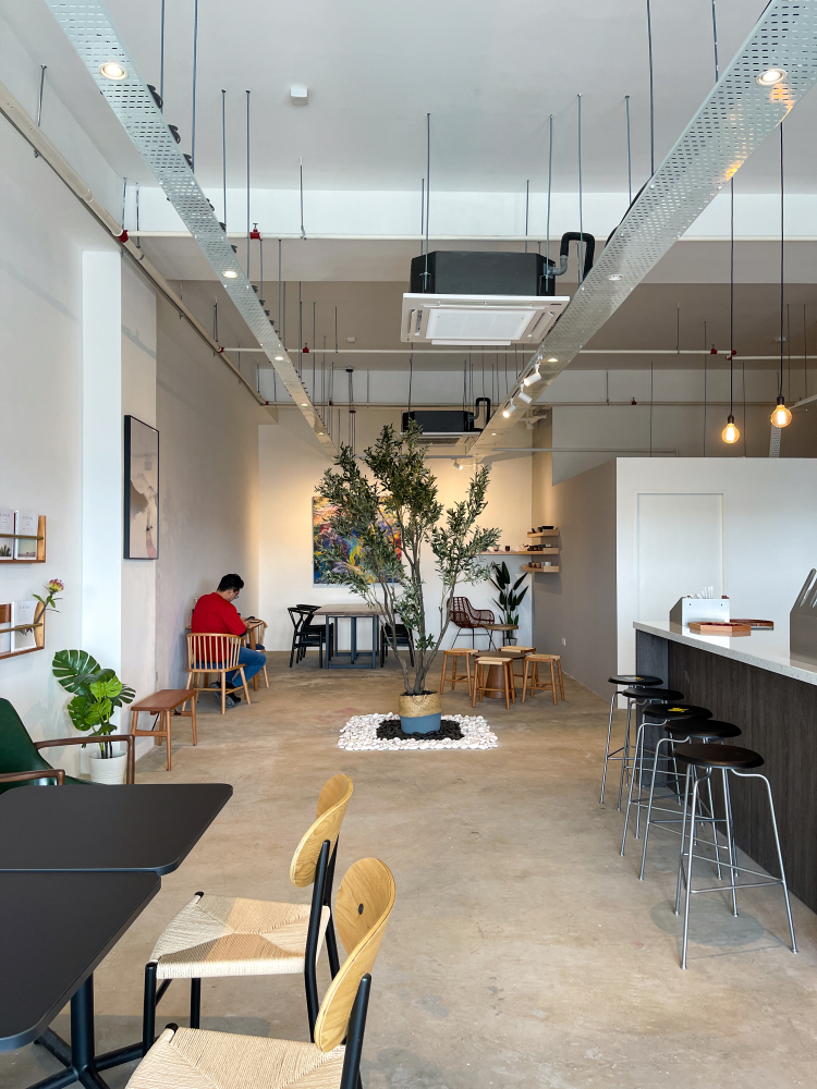 A sense of Zen in a senselessly zany world: This new cafe has been lovingly conceived by its Malaysian founder Laurence, who spent the last decade living in Shanghai and brings subtle touches of that experience to this space. Zeneyes Cafe is a visual beauty that pays tribute to the classical gardens of Suzhou, adorned with pottery-inspired cups and abstract art by a Hangzhou-based illustrator, illuminated overhead by pendant lighting, centred around a faux olive tree with its leafy reflection cast against a wall-mounted round mirror.