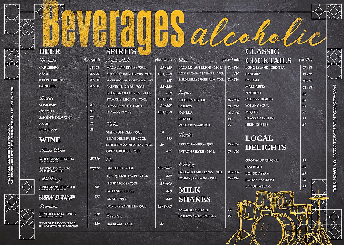 - wine, snack, juice, gin, tea, pizza, beer, sandwich, milkshake, brandy, rum, shooter, tequila, whisky, liqueur, cocktail, sake, vodka, cafe, coffee